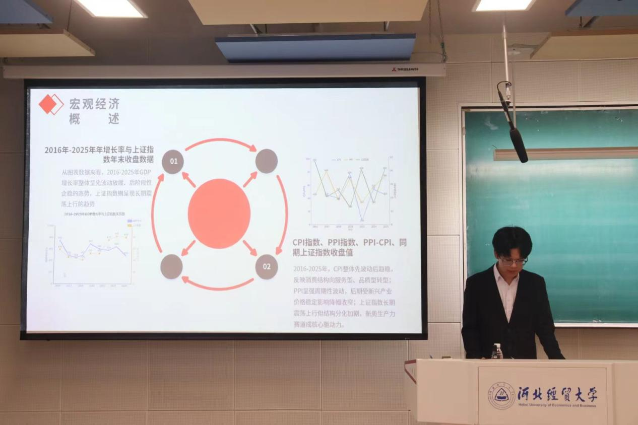 大赛于2025年9月启动,历时两个多月,分设个人赛与团体赛两部分:个人赛以2025年10月31日模拟交易平台闭市时的统计数据为依据,按总收益资金从高到低排序确定获奖个人;团体赛则结合投资分析报告评审与最终答辩成绩综合确定排名。来自永利集团88304官网、河北农业大学、河北地质大学等高校的六支代表队晋级团体决赛。