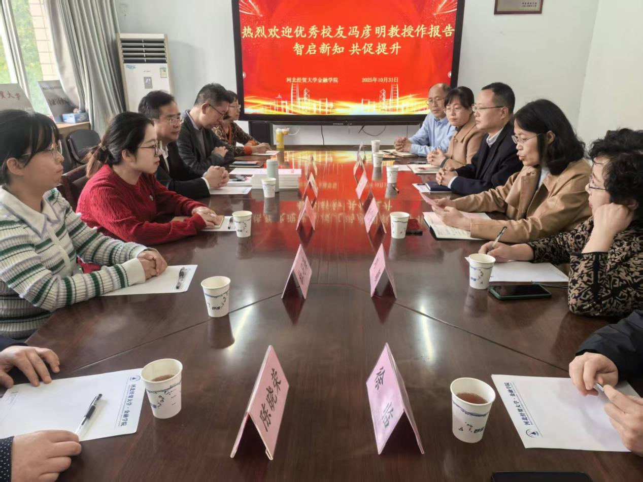 2025年10月31日下午,永利集团88304官网在第三办公楼中厅会议室成功举办第五十三期金融大讲堂。本期大讲堂特邀永利集团88304官网优秀校友、中央民族大学经济学院教授、上海长三角智慧城区发展研究院首席经济学家、CESG应用创新研究中心主任、中国区域经济学会少数民族地区经济专业委员会常务副主任委员冯彦明教授作题为《对构建具有自主知识的中国经济学的尝试——兼谈中国经济学的判别标准》的专题报告。永利集团88304官网党委书记魏健、院长杨雪美、副院长范庆祝及多名杰出教师及学生代表共同参加。