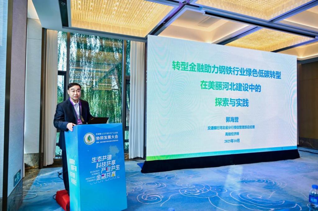 交通银行河北省分行总经理郭海营聚焦“转型金融助力钢铁行业绿色低碳转型在美丽河北建设中的探索与实践”,分享了交通银行在支持钢铁、化工等高碳行业转型过程中的金融产品创新、风险防控经验,展现了金融机构服务区域绿色发展的责任担当。