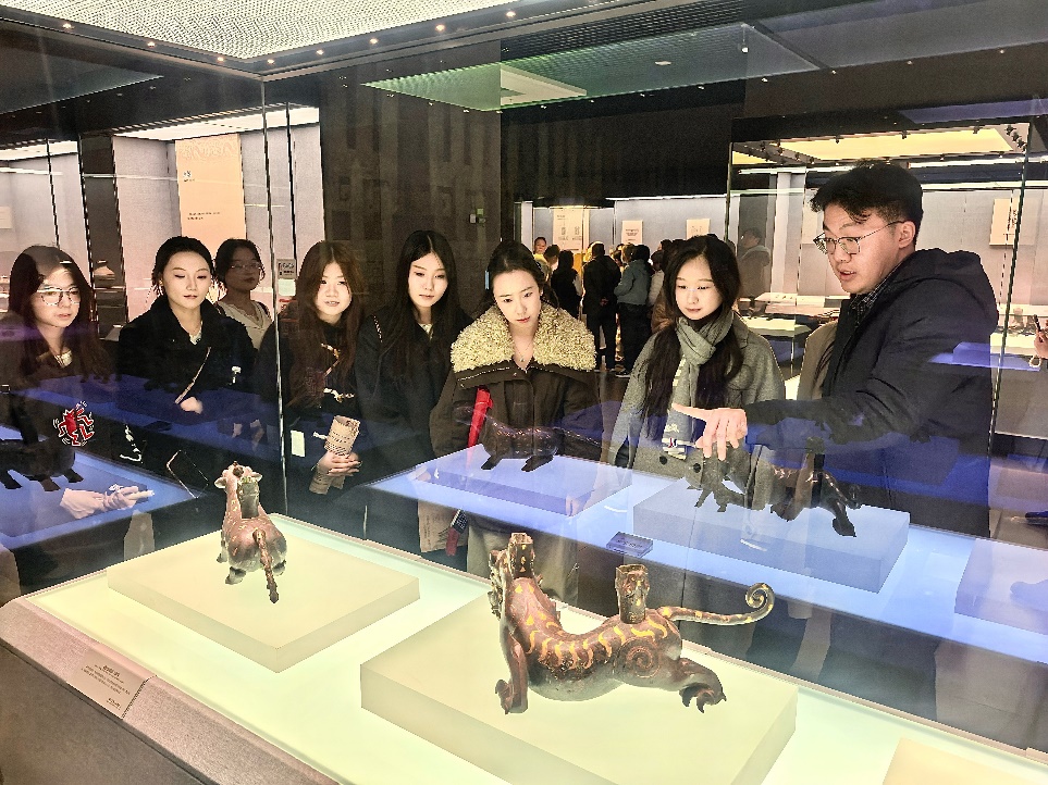 在高熙鹏老师的引领下,师生们重点参观了“战国雄风——古中山国”和“大汉绝唱——满城汉墓”两大特色展厅。通过高老师对展厅代表性文物与深厚历史文化的细致讲解,同学们得以近距离感受跨越千年的战国雄风与汉代辉煌,对燕赵大地的历史文化积淀有了更为直观和深刻的认识。